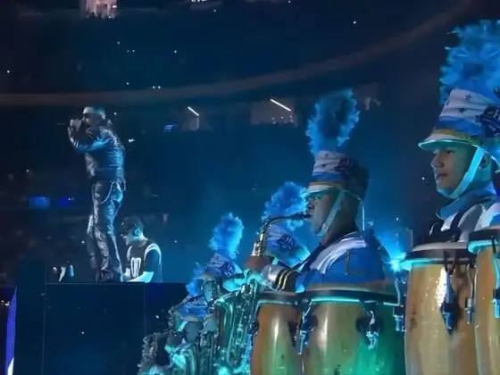 La actuación vino acompañada de un espectáculo de fuegos artificiales, luces incandescentes de diferentes colores por las pantallas del estadio y un grupo de diferentes percusionistas dando ritmo a los miles de aficionados que corearon las canciones, muchos de ellos con el teléfono móvil grabando y haciendo fotografías.
