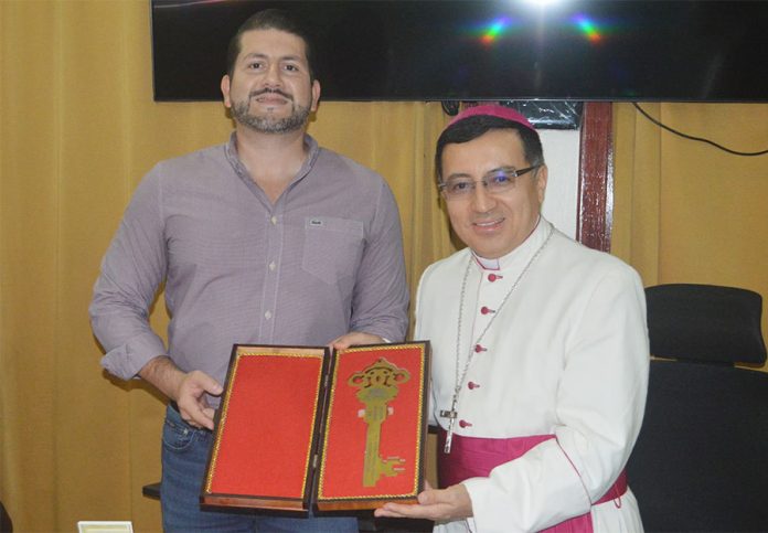 Tegucigalpa – El alcalde de La Ceiba, Bader Dip, entregó hoy las llaves de la ciudad a Monseñor Simón Bolívar Sánchez Carrión, actual Nuncio apostólico de Honduras.